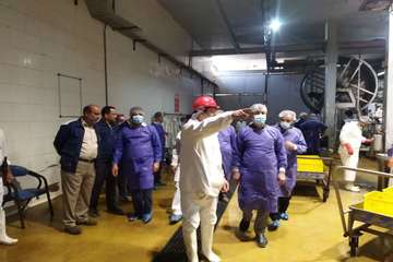 به گزارش روابط عمومی اداره کل دامپزشکی خراسان رضوی، دکتر سیدسعید حسینی معاون بهداشتی و پیشگیری, دکتر حسین رضوانی مدیرکل حوزه ریاست، حقوقی و ارزیابی عملکرد، دکتر مسعود محمدیان مدیرکل دفتر نظارت بر بهداشت عمومی و مواد غذایی و حجت الاسلام والمسلمین مهدی رنجبران مسئول حوزه نمایندگی ولی فقیه در سازمان دامپزشکی کشور به همراه دکتر محمود جوادی نژاد مدیر کل دامپزشکی استان و هیئت همراه از کشتارگاه صنعتی دام مشهد و بخش های مختلف آن بازدید به عمل آوردند.