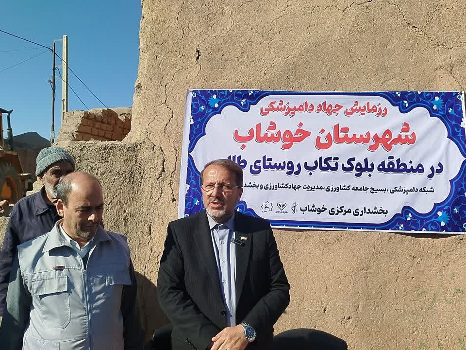 رئیس شبکه دامپزشکی خوشاب گفت: برگزاری اردوهای جهادی و حضور کارشناسان این شبکه در مناطق دامپروری روستایی و عشایری همواره در دستور کار این شبکه می باشد و این اردوی جهادی با استفاده از توان فنی 14 نیروی دامپزشکی و جهادکشاورزی در روستای طالبی به مناسبت گرامیداشت هفته بسیج برگزار گردید.