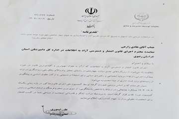 نماینده محترم اجرای قانون انتشار و دسترسی آزاد به اطلاعات اداره کل دامپزشکی خراسان رضوی