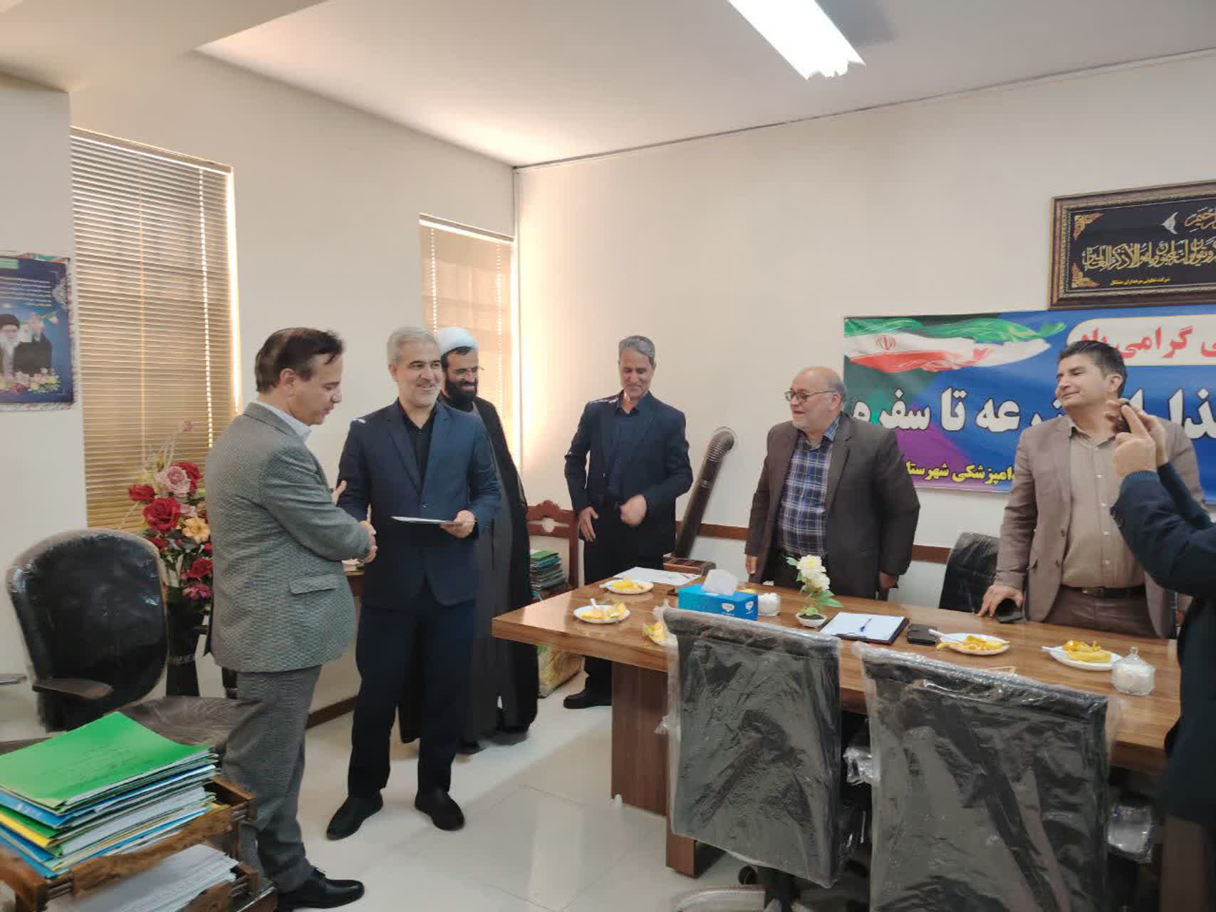 در این جلسه که با حضور آقای دکتر شمس آبادی معاونت محترم توسعه و مدیریت منابع اداره کل دامپزشکی استان و حجت الاسلام شورورزی مسئول محترم دفتر نمایندگی ولی فقیه در اداره کل دامپزشکی استان برگزار گردید طی حکمی از سوی  مدیر کل محترم دامپزشکی خراسان رضوی ،آقای  دکتر فردین حسین زاده  به عنوان سرپرست شبکه دامپزشکی گناباد منصوب گردیدند.