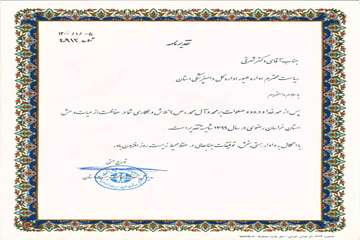در لوح اهدا شده با امضای مهندس تورج همتی آمده است: