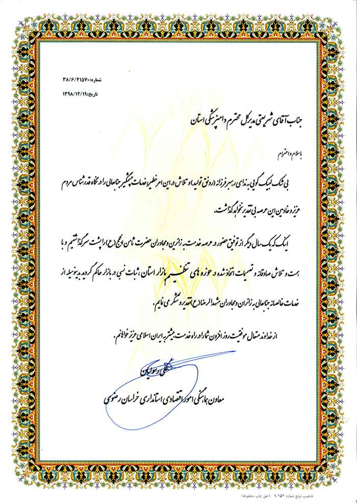 قدردانی معاون استاندار از مدیر کل دامپزشکی استان خراسان رضوی